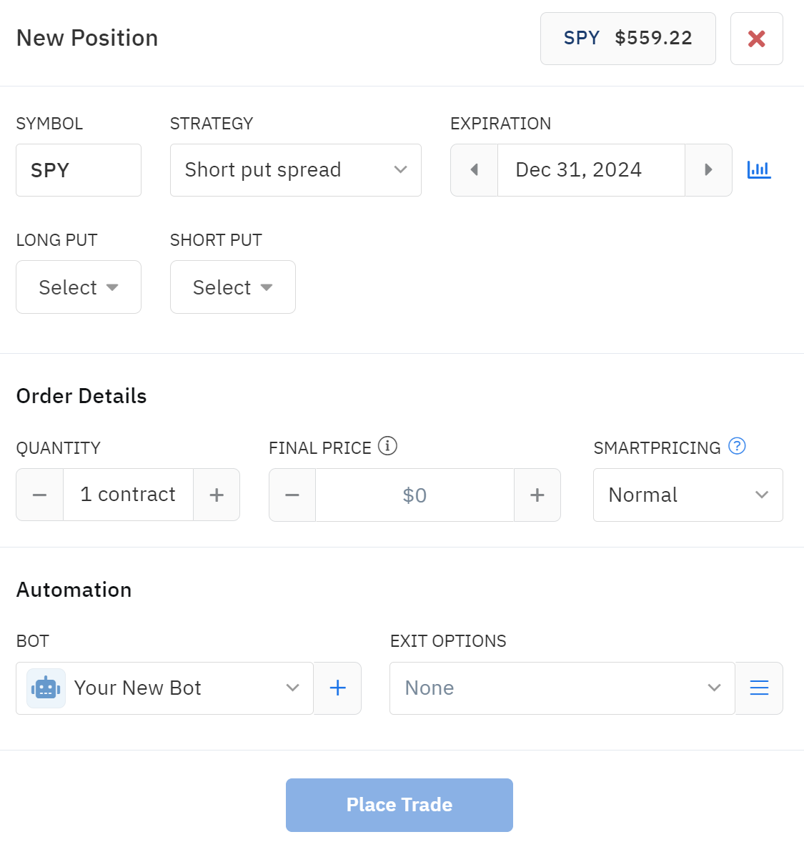 Manual trading on Option Alpha is designed to give you full control over your trades while still benefiting from the platform’s powerful automation tools. The universal New Position window centralizes all the features you need to make informed decisions and manage your trades effectively. By combining manual trade entry with automated position management, you can create hybrid strategies that leverage the best of both worlds, allowing you to respond to market conditions with precision and confidence.