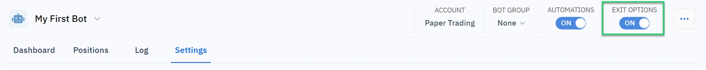Exit Options always run, even if your automations inside a bot are turned off, so your positions are always managed, unless you turn off Exit Options in your bot (see below).