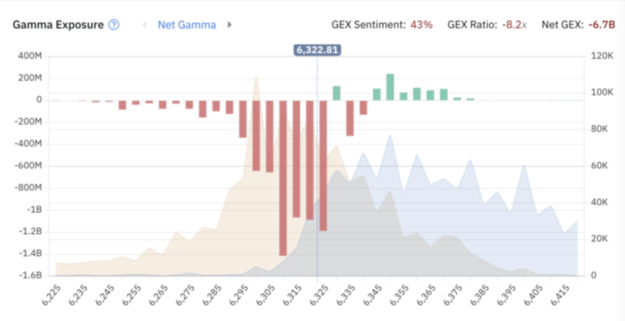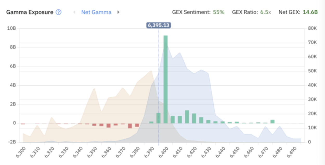 GEX sentiment is the % of bars nearest to the current price that are positive.
