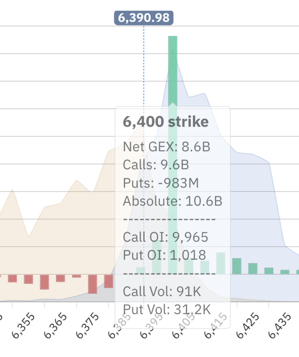 For example, if there is 9.6b call gamma exposure and -1b put gamma exposure, the net GEX is 8.6b.